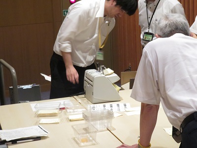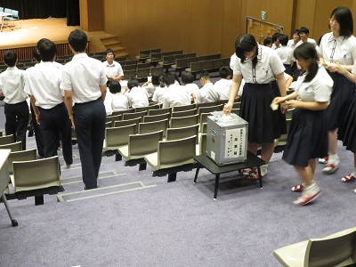 | 早速開票され,実際の装置を用いて,慎重に得票数が計測されます。 | 最後に教頭先生から,今回ご講演下さった方々に,謝辞が述べられました。 |