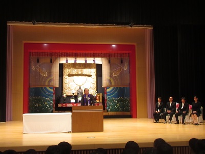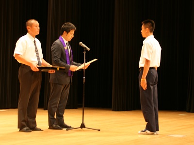 6月の感謝祭では毎年永年勤続表彰が行われます。これは創立記念日のある6月の感謝祭における恒例行事で、学園に長きにわたって勤務されている先生方を表彰するものです。今回も4人の先生が表彰されました。また6月の感謝祭には中学部1年生の保護者が招かれ,式典終了後学年懇談会も開かれました。一方,今回は陸上インターハイ奈良県予選会で優秀な成績を収めた生徒たちの表彰も行われました。多くの種目で優秀な成績を収めたので,キャプテンが代表して登壇し表彰状を受け取りました。