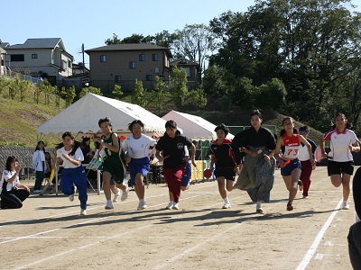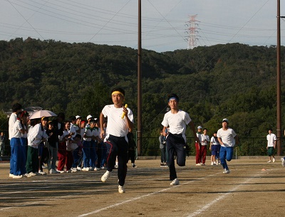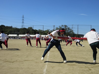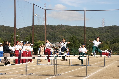 行事 陸上競技大会 2019年10月22日 2019年10月22日 10月16日(水)澄み渡る秋空の下,奈良カレッジ第二グラウンドにおいて陸上競技大会が開催されました。生徒たちは各種目で記録の更新を目指す一方,学年の枠を越えた色別対抗戦でポイントを競い合います。ダンスなどのマスゲームや生徒会企画の競技などもあり,グラウンドは一日中歓声に包まれていました。