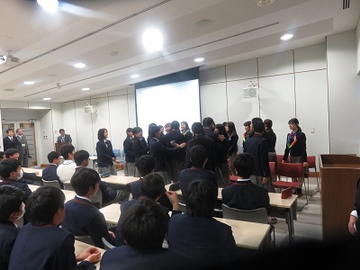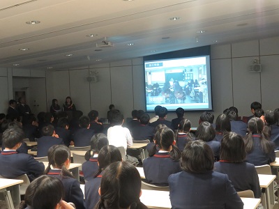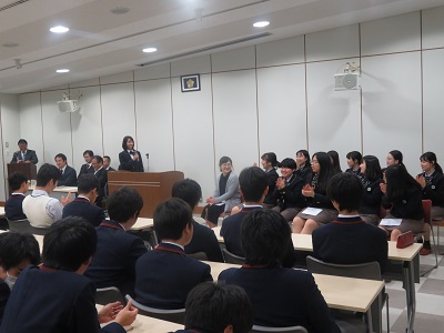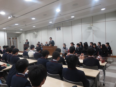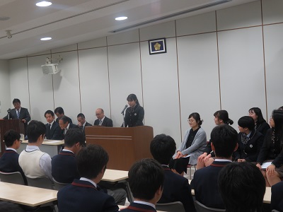 | 本校生徒会代表生徒による挨拶(英語でした) | 美林女子校代表生徒の挨拶(日本語でした) |