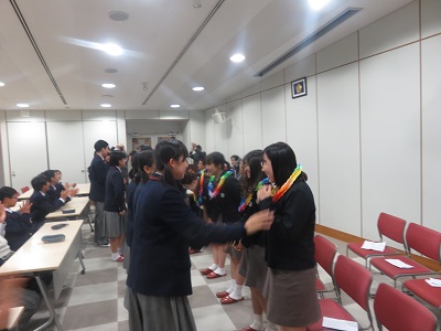| 歓迎のレイの贈呈 | 美林女子高校生徒による学校紹介 |