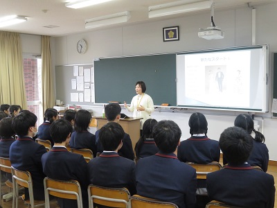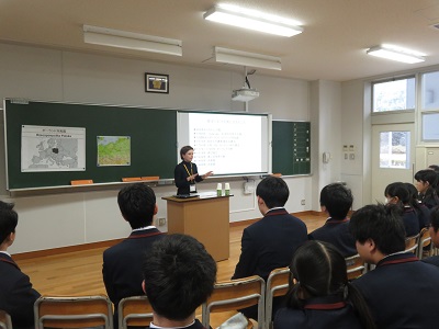 1月25日(土)高校1年生を対象に人権講演会を開催しました。今年も,グローバル香芝(香芝市国際交流市民の会)の協力の下,日本で生活する外国人の方をお招きしお話しいただきました。はじめに大講義室でグローバル香芝の紹介の全体会を行ったあと,テーマの異なる4つの分科会に分かれ,それぞれの担当の方より,自国と日本との文化や習慣の違い,そして日本社会でのくらしぶりやさまざまなエピソードや,日本という国に対する感想について詳しくお話を聞きました。この講演会は,生徒たちにとって,自国とは異なる国で生きることや国際社会について考える機会になりました。