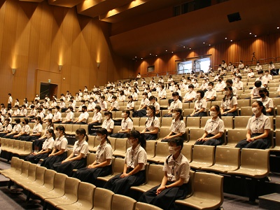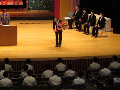 このたび,生徒会役員任命式と先生方の永年勤続表彰が行われました。本来なら,もっと早い時期に行われますが,今年はコロナウイルス感染症対策のために,各種行事が中止されたり,延期されたりしているため,これらの式典も7月になって漸く実施されました。智辯学園では毎月感謝祭を行って参りましたが,今年はそれが叶わず,2月以来久しぶりとなる感謝祭がこれらの式典に先行して行われました。今回の感謝祭および式典は,中学生と高校生でそれぞれ異なる時間に講堂に入場して実施され,校歌も聴くのみとなりました。まだまだ油断できない状況ですが、いくつかの行事が実施できたことで,ゆっくりながら学校が進み始めた感がありました。