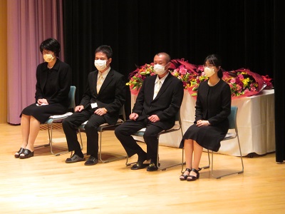 | 永年勤続表彰される先生方(中学部実施時) | 永年勤続表彰される先生方(高等部実施時) |