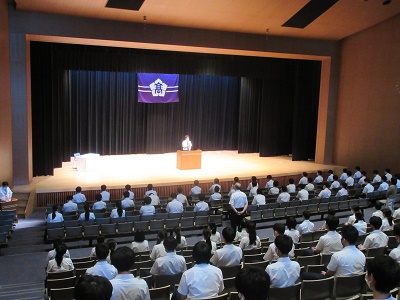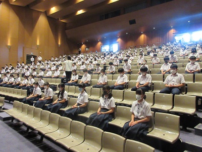 8月7日(金)中学部と高等部それぞれで終業式が行われました。藤田校長から長いようで短かった1学期を振り返ってのお話がありました。コロナウイルス関連の話が中心でしたが,授業が十分にできなかった半面,普段学ぶことができないことを学ぶ機会にもなったとも話されました。