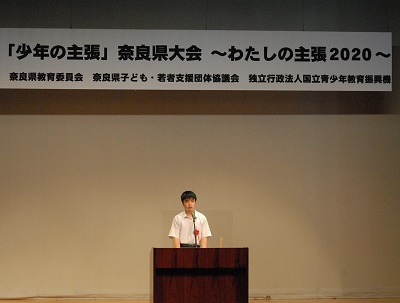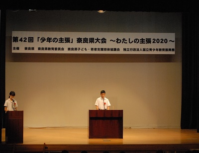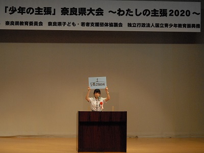9月6日(日)五條市市民会館において,第42回「少年の主張」奈良県大会が行われました。応募総数3,592作品から優良賞に選ばれていた10作品の発表がこの日あり,奈良カレッジ中学部から3名の生徒が発表しました。その結果,中学3年生の三輪彩結さんが「さよならする確率」で最優秀賞を受賞しました。おめでとうございます。