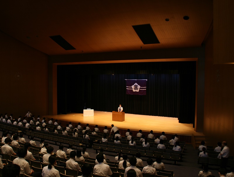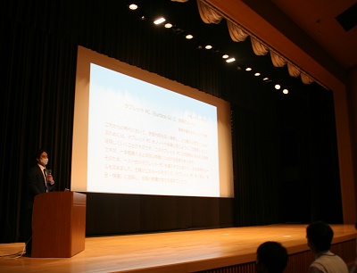 配付に先立ち,タブレットの利用に関する説明会を講堂で開き,利用方法や注意事項を説明しました。