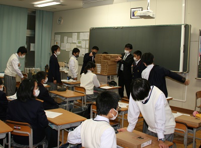 | 講堂での説明は校長先生がしてくれました。 | 教室で一人ひとりにタブレットを配付しました。 |