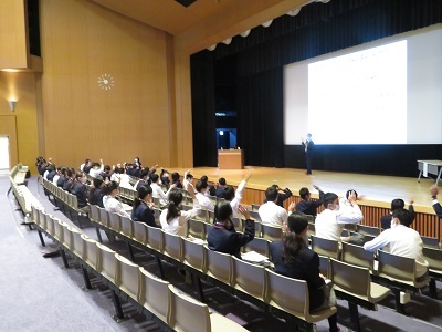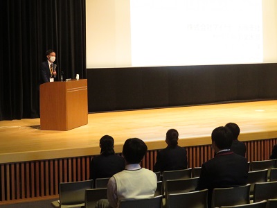 奈良カレッジでは,高校1年生を対象に進路講演会を開催しています。講演会を通して「はたらく」ことを念頭におきながら,今後の進路選択の一助としてくれればと考えています。今回は,マイナビ教育広報事業本部 サポート課の工藤 久志先生を講師としてお招きし,「”進路のミカタ”~理想の進路選択の考え方~」と題してご講演いただきました。生徒たちは,自分たちの将来が関係しているだけに,真剣な表情で話を聞いていました。また,先生は,ワークやグループでの議論を多く取り入れながら進行してくださいました。なお,座席配置やグループワークについては,感染防止に配慮しながら行われました。