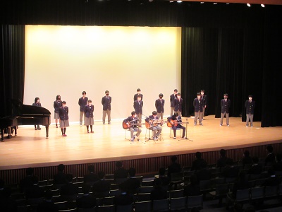 | 音楽部は素晴らしいハーモニーを醸し出していました | 高1の合唱では担任の先生がギター演奏で援護射撃 |