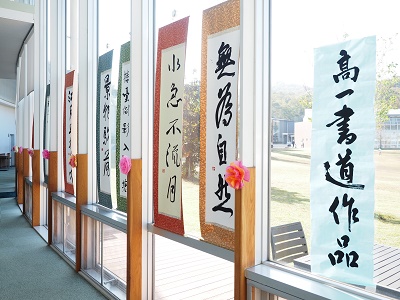 | 高1書道選択者の作品掲示 | 中1~中3の生徒と高1芸術選択者の作品展示 |