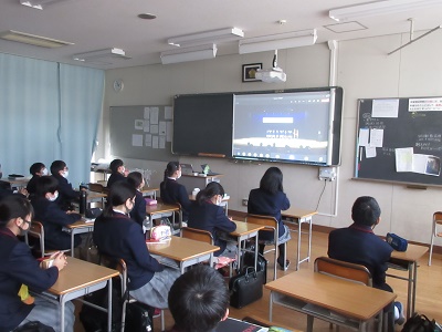 | 代表生徒によるエール | 各教室で壮行会の様子を見守る生徒たち |