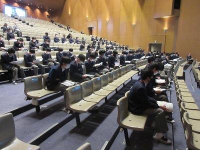 12月19日(土)高校2年生を対象に進学講演会を開催しました。この講演会では,駿台予備学校の吉川 恭史先生が,「” 夢 ”実現に向けて」と題して,大学入試の動向をわかりやすく解説してくださいました。この講演会は,生徒が1年後に迫った大学入試への意識を高め,入試に対する動きを具体的なものとするためのものです。例年保護者を招いて開催していますが,今年は資料を家庭に持ち帰り,生徒と保護者が大学入試の情報を共有してもらうことにしました。