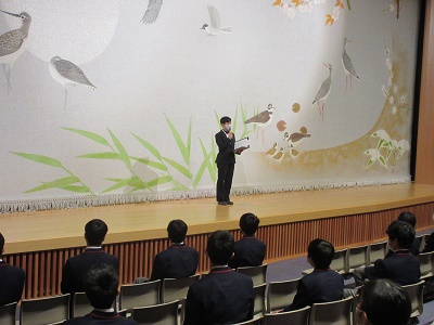 12月28日(月)中学部と高等部それぞれで終業式が行われました。校内スポーツ大会(陸上競技大会の代替行事)の表彰伝達の後,藤田校長から2学期の振り返りとして,今学期はコロナウイルス感染症対策に加え,生徒の工夫と努力そして協力によりさまざまな行事を行うことができたことのお話がありました。続いて,17世紀の科学者ニュートンが,感染症であるペストが流行するロンドンから故郷に疎開する中で,偉大な発見をしたことについて話されました。そして,差し迫った大学受験など中高異なるお話も交えながらも,中高ともにコロナウイルス感染症拡大が続く今こそ,強い気持ちをもって努力していって欲しいと伝えられました。3学期の始業式は1月8日(金)です。