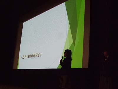 行事 高1 京都見学発表会 2021年1月14日 2021年1月14日 二学期に実施された京都見学の研究発表会が講堂において行われました。生徒は実際の調査で得た知見にさらなる考察を加え,各班でそれぞれ工夫した図表を用いて発表を行いました。発表班以外はワークシートに発表のよかった点などを記載し,さらに発表内容の評価を5点満点の得点で記載しました。発表終了後,ワークシートの得点は直ちに集計され,最上位の3班が発表されました。