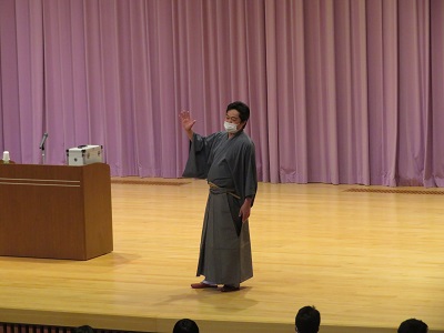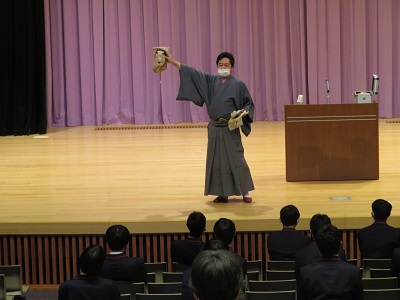 4月20日(火)に特別講師に金春流能楽師の金春穂高先生をお招きして,高等部2年生を対象とした能楽鑑賞の事前学習会を行いました。この学習会は例年高1で行われていますが,昨年より延期されたため今年高2対象として行われました。学習会では能楽の歴史をはじめ,実際に使われる面などの説明もありました。今回の講演を事前学習として,4月25日(日)に『奈良国際フォーラム甍』での能楽鑑賞教室を予定しています。