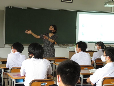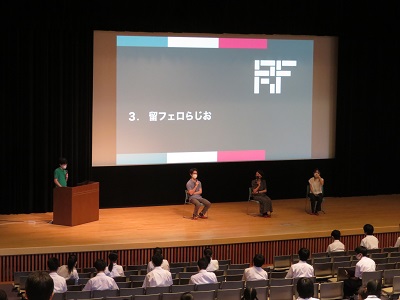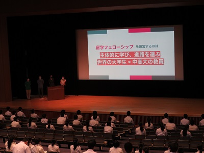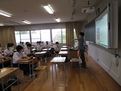 7月5日(月)に,NPO法人 留学フェローシップから4名の講師をお招きして,高校1年生を対象に,講演や模擬授業をして頂きました。講演と模擬授業は以下のスケジュールで行われました。