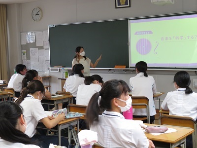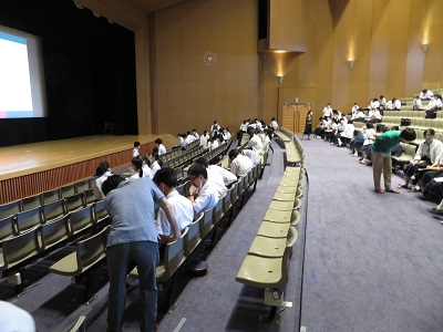 1~3は全体会として講師先生4人により講堂で行われ,4~6はテーマごとに分かれて各教室で行われました。なお,全体会での質疑や模擬授業でのテーマは,事前のアンケート調査に基づいて準備されました。講師の先生方はいずれも現役の大学生あるいは大学院生で,今回の講演や模擬授業を通じて,生徒たちに大学や研究に興味を持たせ,主体的に学ぶ力を身につけさせようとされていました。