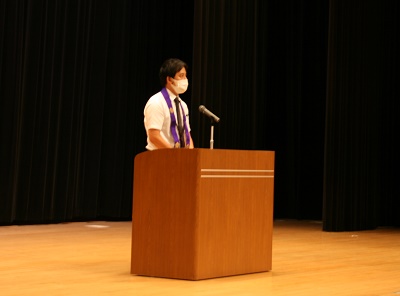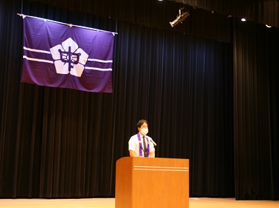 その始業式で藤田校長は、夏の高校野球における兄弟校対決に触れられ、和歌山智辯がとった優勝の瞬間のエピソードや、敗れた奈良智辯のある選手が続けた献身的な活動が、結果的には野球技術の向上に繋がったというエピソードを紹介し、礼儀や社会貢献の重要性について話されました。そして、コロナ禍の中、奈良カレッジの生徒諸君には、一人ひとりの自覚ある行動が、安全かつ楽しい学校生活を継続させる大きな鍵であることを強調され、新型コロナウイルス感染症対策をしっかりと行い、秩序ある行動を期待していることを説かれました。