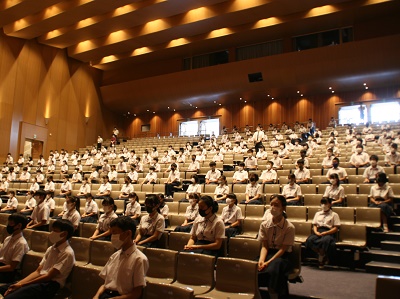 本来なら8:50から1時間目が始まりますが、この2学期は9月10日(金)まで始業時間を1時間遅らせ、9:50からとしました。また同時に、1校時60分から50分に短縮し、下校時間は平常通りとなります。2学期は行事もかなり変更を余儀なくされます。奈良カレッジ中高の2学期はこうして始まりました。