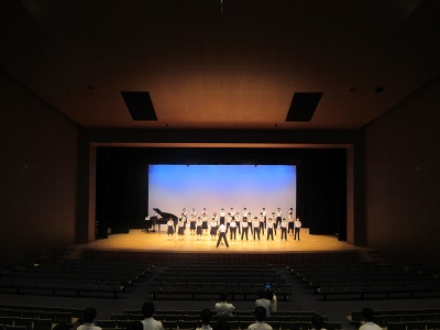 毎年,文化発表会前に,中学1年生から3年生までの全クラスが参加する合唱コンクールを開催します。例年なら,全員が講堂に入場し,一斉に発表を行い,互いに審査します。しかし,今年はコロナ禍の中,学年毎に講堂で発表したものを録画し,教室で上映・審査して,例年通り学年毎の優秀クラスを選びました。