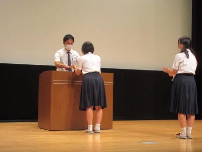 また,午後の部の最後には,先日の合唱コンクールにおける各学年の優秀クラスと,最優秀指揮者および伴奏者の表彰も行われました。