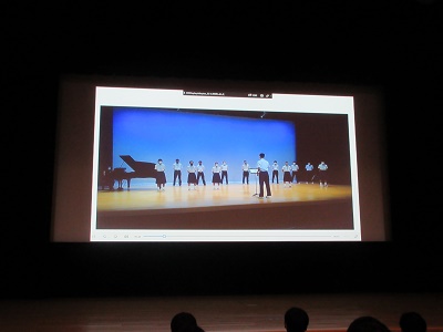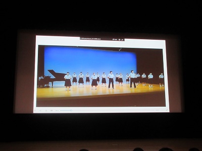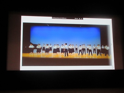 | 高等部 高1音楽選択者の合唱の映像を上映(左から高1D組・高1BC組・高1A組) | ||