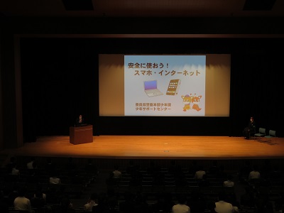 | 奈良県警察本部少年課少年サポートセンターの方々による今回のご講演は「安全に使おう!スマホ・インターネット」です | |