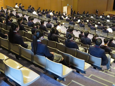 10月21日(木)奈良カレッジ講堂において,奈良県香芝警察署生活安全課および奈良県警察本部生活安全部少年課の方によるSNSについての講演会と,奈良県警察音楽隊の方々による演奏を鑑賞する会を開催しました。今回もコロナウイルス感染症拡大防止のため,講演会・鑑賞会ともに中学部と高等部を別にした二部制で行いました。