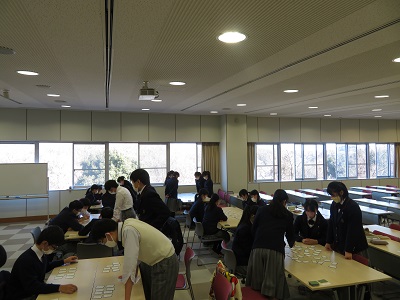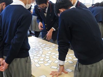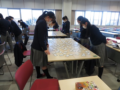 その他 高1 小倉百人一首 かるた大会 2021年12月25日 2021年12月25日 12月23日(木),高等部一年生で小倉百人一首 かるた大会がクラス別で実施されました。各クラスが6つの班に分かれて,獲得枚数とお手つきの回数で総合成績を競いました。生徒たちは,日頃学んできた百人一首の成果を発揮するべく盛り上がりました。 A組 B組 C組