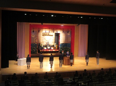 5月23日(月)に感謝祭が行われました。感謝祭は、月に一度講堂において読経を行い、四恩に感謝する行事です。また、その時理事長先生からさまざなジャンルのお話(社会・経済・スポーツや学業、それに哲学や倫理に関わる話など)を聴きます。今回はその感謝祭に先立ち、新しい生徒会役員の任命式も行われました。この新役員が今後の生徒会活動をリードしてくれることに期待しています。