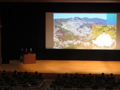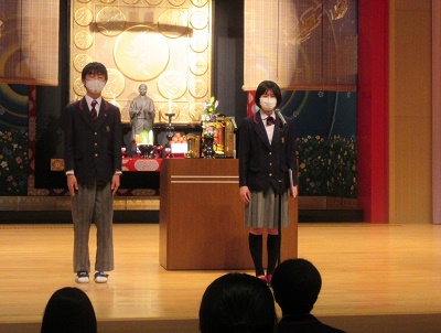 | 新生徒会役員の任命式 | 新生徒会長の挨拶 |