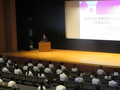 その他 高1進学講演会 2022年9月24日 9月22日(木)、高等部1年生を対象として、生徒たちが主体的に学ぶ力を身につけるとともに、間近に迫る文理選択および進路選択で自信を持って決断できることをねらいとして進学講演会を開催しました。会では株式会社マイナビ大阪支社 未来応援事業本部 高校支援統括本部 水戸岡 真治 様 を講師としてお招きし、「後悔のない進路選択に...