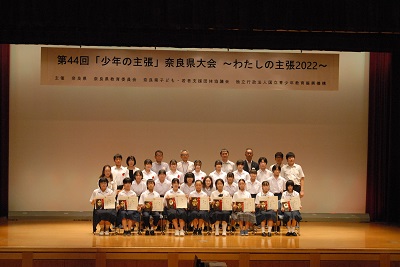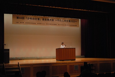 第44回「少年の主張」奈良県大会(奈良県、奈良県教育委員会、奈良県子ども・若者支援団体協議会、独立行政法人国立青少年教育振興機構主催)が、9月4日(日)、山添村ふれあいホールで開催されました。この大会は、次代を担う子どもたちに広い視野と柔軟な発想や想像性などと共に、物事を論理的に考える力や、自らの主張を正しく伝え、理解する力などを身に付ける契機として実施されています。
