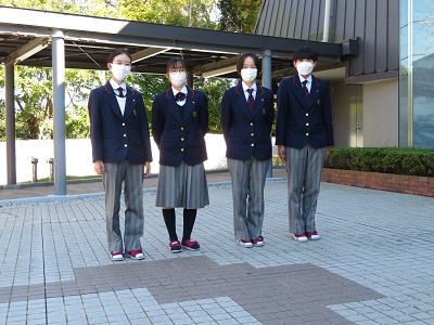 一方、今月から制服のパンツスタイルも導入されました。このパンツスタイルは、上下共にこれまでの男子用のものとは異なり、かなり細身タイプのものもあります。ネクタイ・リボンを選択可とし、制服選びに幅を持たせることができ、生徒たちにも好評です。