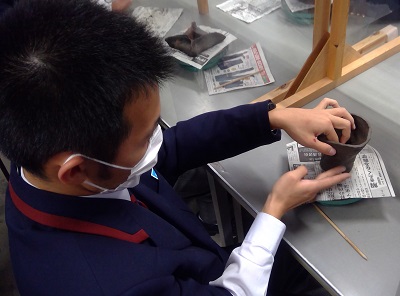 | 「うーん、なかなか難しい・・・」(備前焼の創作体験) | 「こっちでいいよな?」(倉敷での自由散策) |