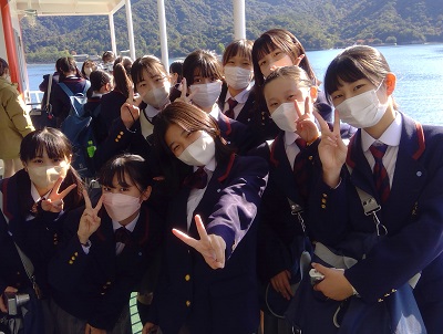 1日目は、淡路島を通り四国に渡り、四国水族館を見学し、2日目は手打ちうどん体験をした後、吉野川でラフティング体験を行いました。3日目は、広島平和記念公園や宮島を訪れ、最終日は倉敷美観地区の自由散策などを行いました。今年は天候にもたいへん恵まれ、生徒たちは友達と共に過ごす楽しいひとときを大いに満喫しました。