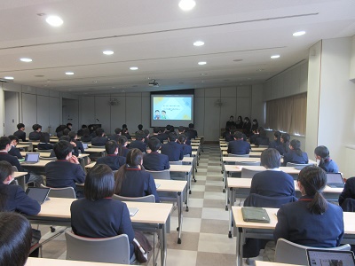 行事 高1 京都見学発表会 2022年12月23日 2022年12月23日 10月末に実施した京都見学の研究発表会が行われました。実際に現地で得た知見に考察を加え、写真や図を用いて発表を行いました。各班、持ち時間5分の短時間ながら工夫を凝らした発表を行っていました。そして発表班以外は発表内容の評価を5段階のアンケートで投票しました。アンケートは直ちに集計され、この発表会の最後に高得点の班が紹介されました。