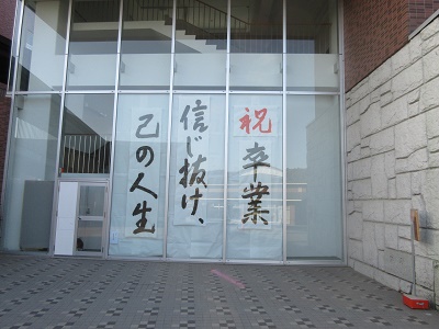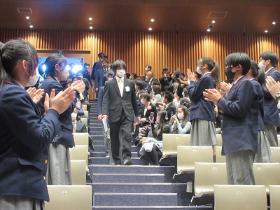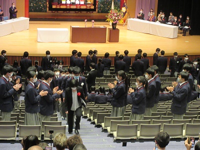 | 2年生の拍手に送られての退場です | 高校エントランス前の送る言葉 |