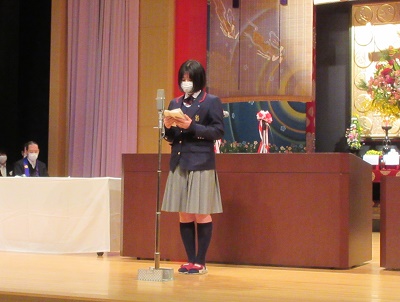 | 在校生代表による送辞 | 卒業生代表による答辞 |