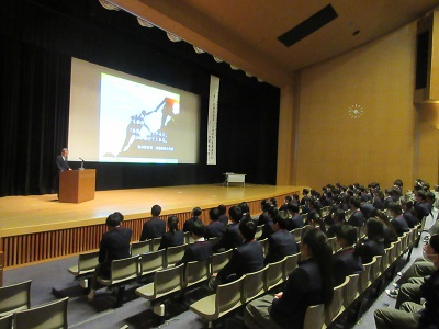 3月13日(月)、国立大学法人大阪大学総長 西尾章治郎先生に『「迷い」を恐れるな 「ときめき」を見逃すな』と題して、中学3年生から高校2年生までを対象にご講演をいただきました。西尾先生は、自らの経験を元に、人生においては誰もが確固たる目標を持って突き進んでいるのではなく、「迷い」の中に一瞬の「ときめき」を見い出して歩んでいけばよいと説いてくださいました。また、これからの‶超スマート社会”においては、AIをはじめとする科学技術に飲み込まれることなく、人間らしさを持ち続けることが大切。そのためには、コミュニケーション能力を身に付けることが重要であるとも仰っていました。生徒たちは、学年によっては少々難しい話も多いにもかかわらず、先生の示唆に富む話を一生懸命聴いていました。