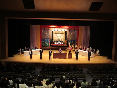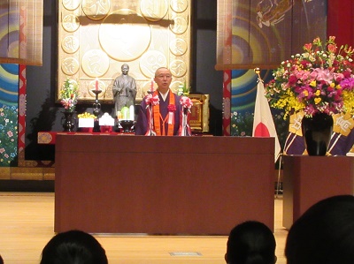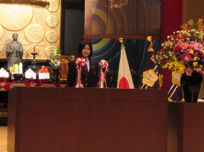 | 新入生の入場です | 一人ひとりが念珠をいただきます |