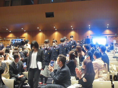 | たくさんの方から祝辞をいただきました | 在校生代表(生徒会長)お祝いのことば |