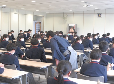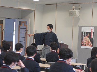 行事 高1 能楽鑑賞教室事前学習会 2023年4月22日 2023年4月22日 金春流能楽師の金春穂高先生をお招きした能楽鑑賞の事前学習会を、4月21日(金)に奈良カレッジ大講義室において、高等部1年生を対象として行いました。学習会では能楽の基本的知識、謡(うたい)の持つ意味をはじめ、実際に使われる能面の説明などがありました。高等部1年を対象とした『なら100年会館 中ホール』における能楽鑑賞教室は4月23日(日)を予定しています。