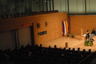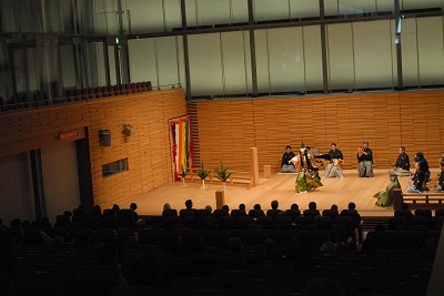 4月23日(日)、高等部1年生は、なら100年会館で行われた「奈良金春会演能会」を能楽鑑賞教室として見学しました。能金春流「箙(えびら)」、狂言大蔵流「太刀奪」、能金春流「巻絹」を鑑賞し、舞や謡の様子、和楽器の演奏など、能の舞台がどのように進められるかを実際に体験しました。(写真は能楽協会の許可を得て撮影しています。無断転用を禁止いたします。)