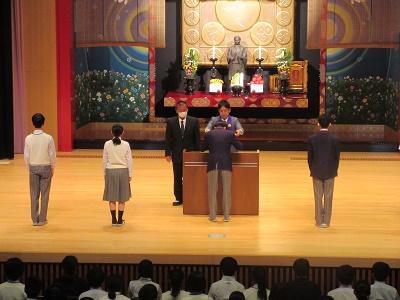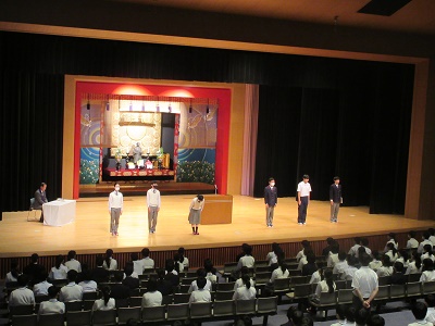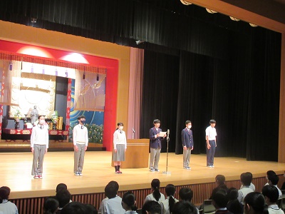 | 生徒会役員の任命式 | 生徒会長による挨拶 |