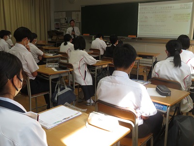 7月11日(火)、高等部1年生を対象にキャリア教育の一環として株式会社ライセンスアカデミー主催の「学問探究ホームルーム」を行いました。今回は7名の講師の先生とライセンスアカデミーのスタッフの方々にお越し頂きました(1名はオンラインで参加)。生徒たちは、アンケートに基づいて7つの講座から2つを選択し、各教室で受講しました。