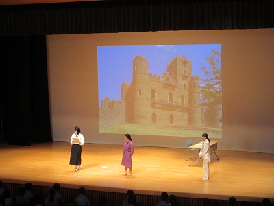 9月15日(金)は、文化発表会の1日目。この日は中学部と高等部が合同で全体鑑賞を行いました。午後は2日目の自由鑑賞(クラスやクラブ、有志企画の発表を自由に鑑賞する)の準備に当てました。昨年の全体鑑賞では、コロナ感染拡大防止の観点から、多くは録画したものを鑑賞しましたが、今年は舞台での生の発表を鑑賞しました。生徒たちも久しぶりの人前での発表に緊張した様子もありましたが、午後からの準備においては明るい声が校内にあふれていました。