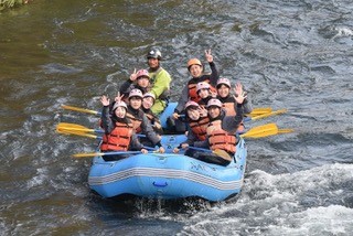 | ラフティングの前のレクチャー | ラフティングでは大自然を堪能! |