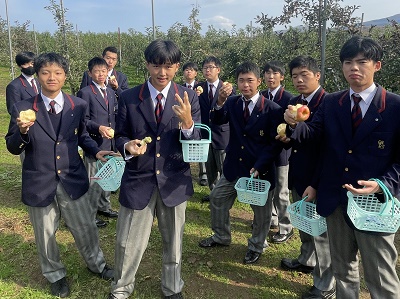 | 観光果樹園でのりんご狩り | 小樽での集合写真 |